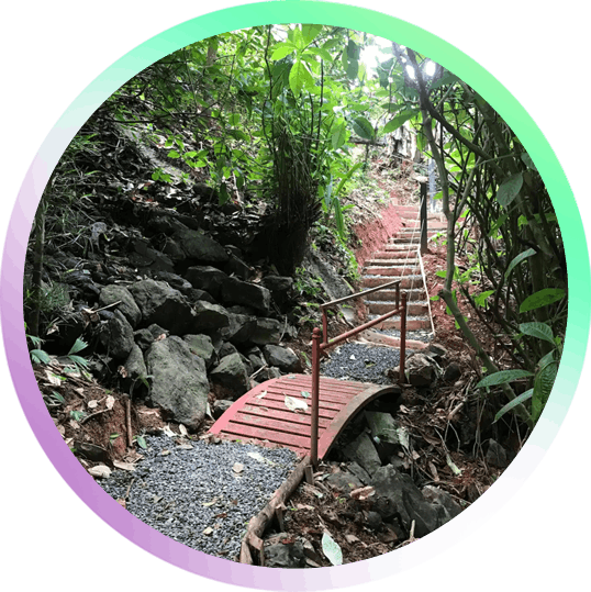 Encourages physical activity, complemented by nearby waterfalls and rivers for rejuvenation.